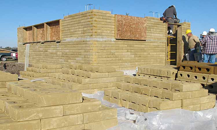 Blocks: Flat or interlocking block configurations. Dry-stacking for faster construction. Hollow cores for vertical reinforcement rods, filling with cement mortar and horizontal reinforcement cavity permitting use in designs for seismic zones.