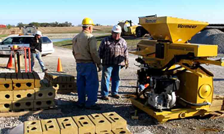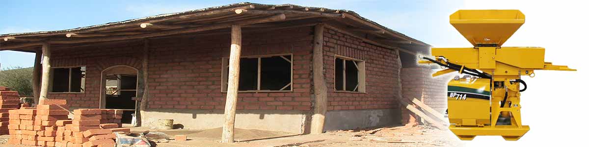 The BP714 uses a unique double compression method that produces block strengths that exceed the compressive strength required for concrete block. The Blocks are 10 x 18 x 35.5 cm, and the machine produces 800-1400 blocks in 8 hours. The BP714 uses manually operated levers for filling the chamber, each stage of compression and ejecting the block. An experienced operator can reach 1400 blocks in 8 hours. It is recommended that the BP714 is sold as a complete system / success package, which includes a spare parts kit, a mixer, two weeks on-site training and a soil test kit.