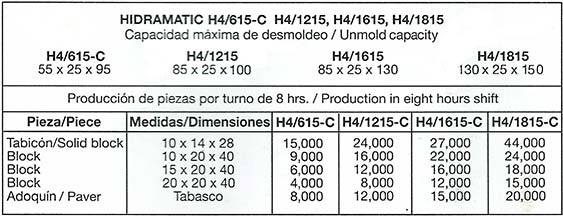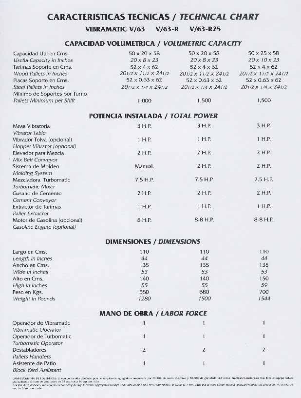Full Product LineItal Mexicana is a full service manufacturer. Their equipment includes the entire range of machines necessary to automate the process of block making. From shake tables, to conveyors, to dosimeters for measuring the materials being mixed, to water meters that add the right proportion of water, to stacking equipment for moving the blocks for curing.