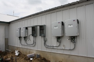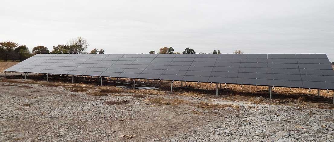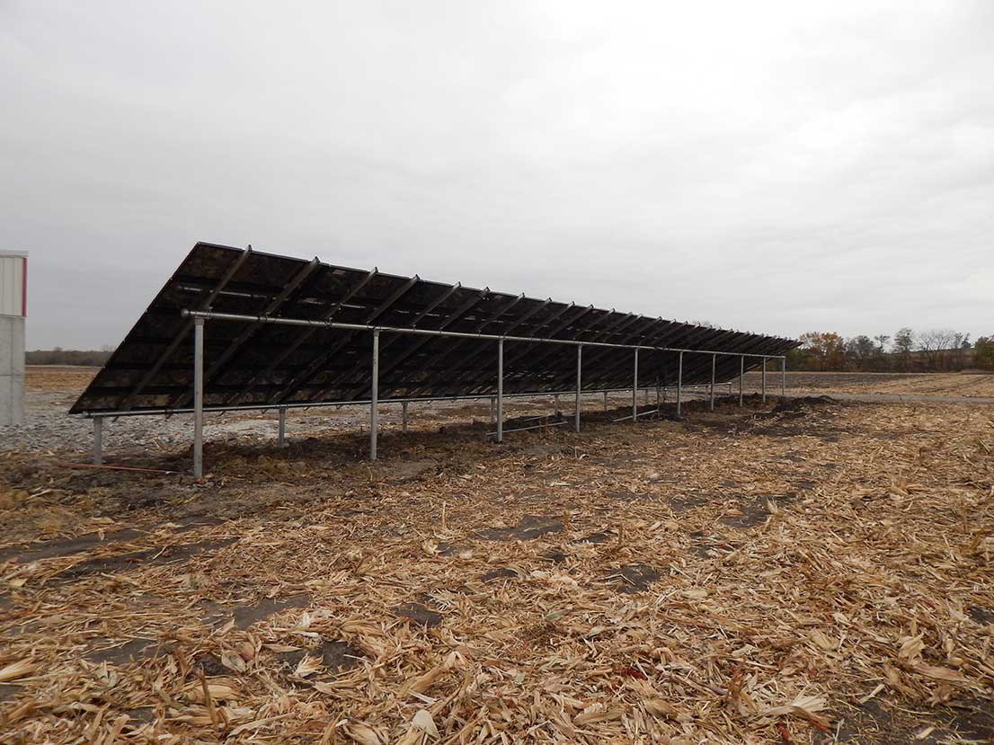 Working with one of the largest solar suppliers in the world, we offer Solar configurations that are typically 20kW or larger with installation times as little as 24 to 48 hours, start to finish. Ground mounted panels are the most common installation method we use because every farm building differs in its type of construction, strength and orientation. Ground mounting also gives us more options for locations and for establishing the optimum angle for the panels in order to maximize their effectiveness. However, we can and do utilize existing farm structures such as barn roofs when feasible, which can reduce the cost of mounting hardware.